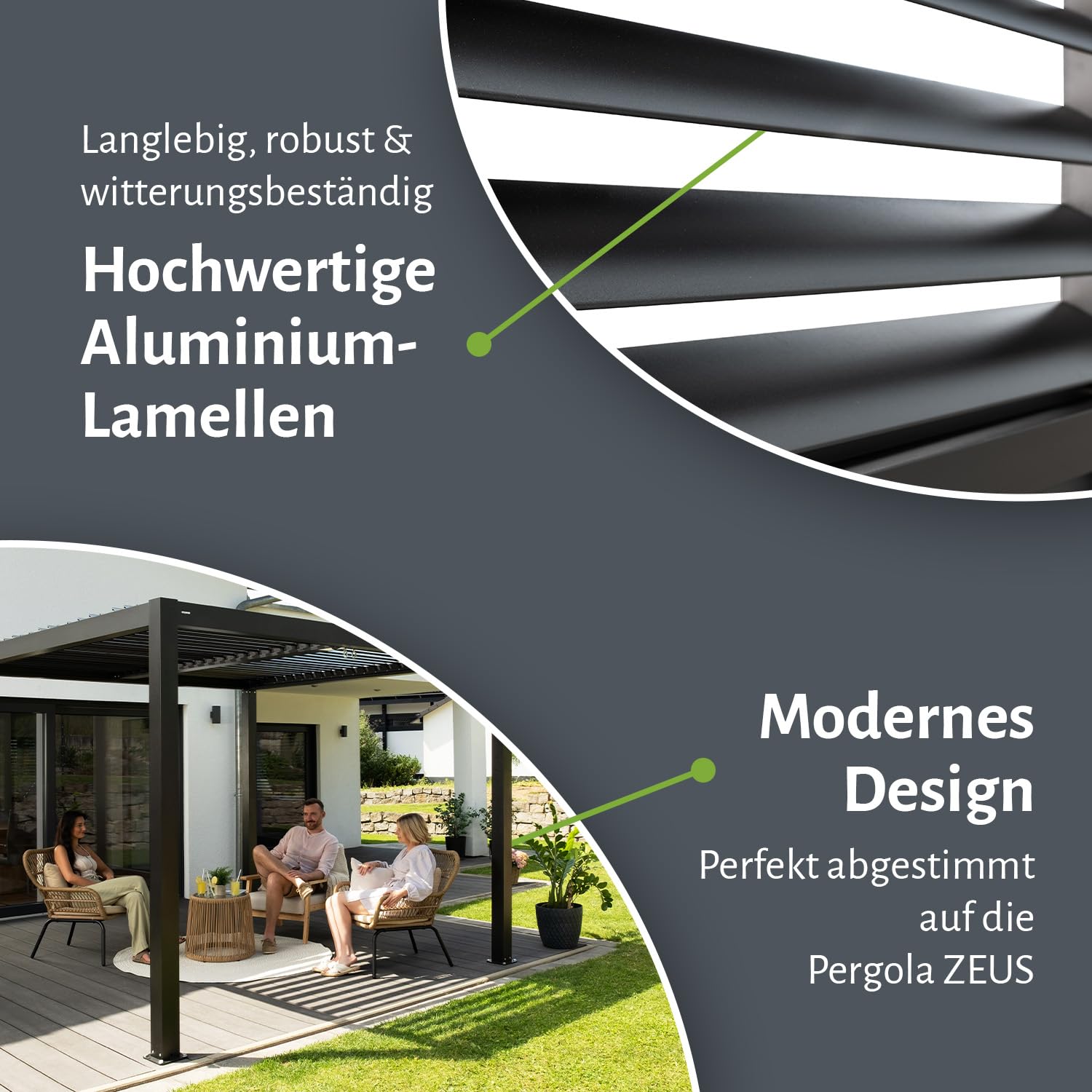 - PERFEKT FÜR PERGOLA ZEUS - Passgenaues Zubehör für stilvolle Seitenabschlüsse, abgestimmt auf Maße & Design der Pergola ZEUS