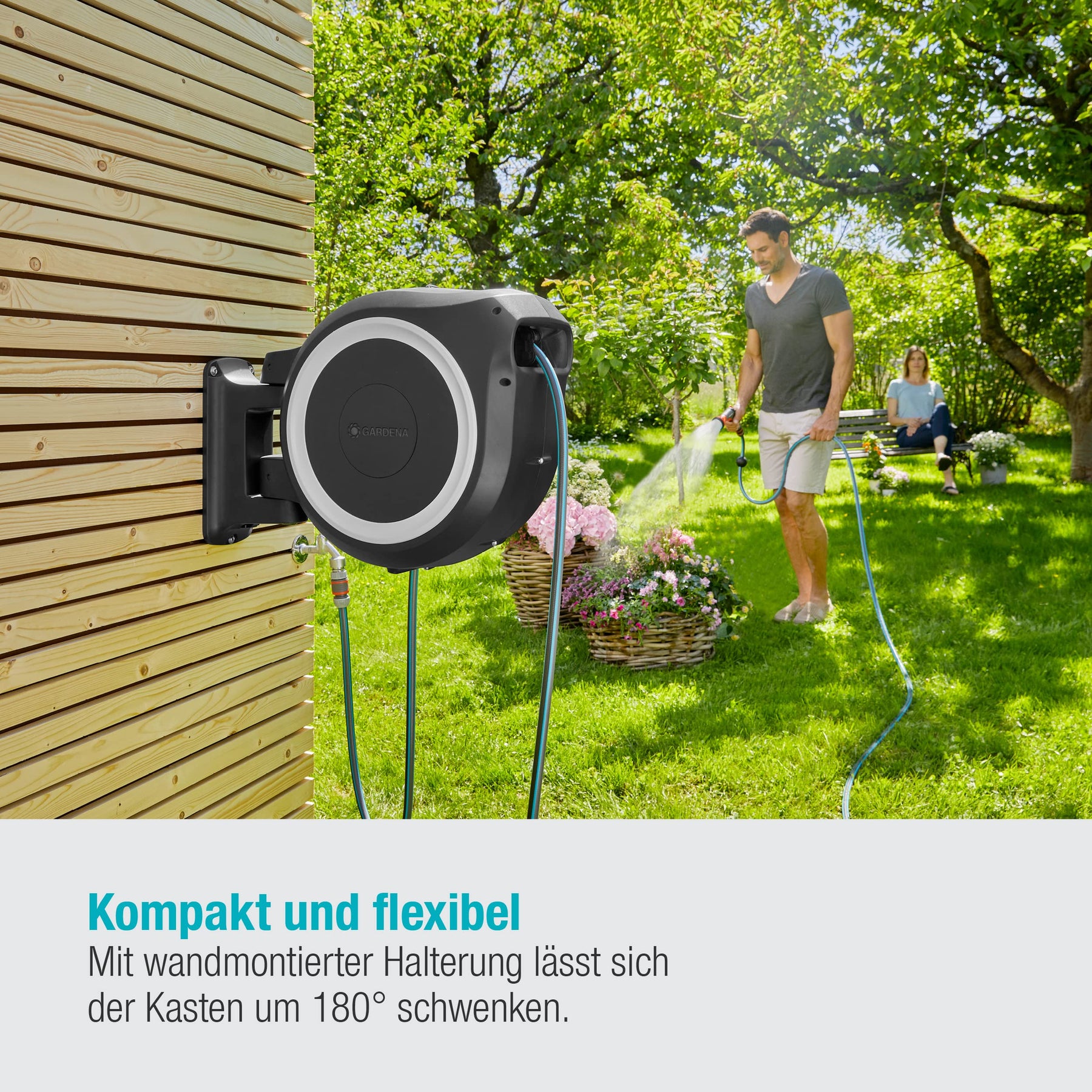 - Bequem & einfach: Kein Bücken, kein Kurbeln und keine schmutzigen Hände, das schätzen Gärtner an den Gardena Wand-Schlauchboxen - zusätzlich werden lästige Stolperfallen durch einen herumliegenden Schlauch verhindert