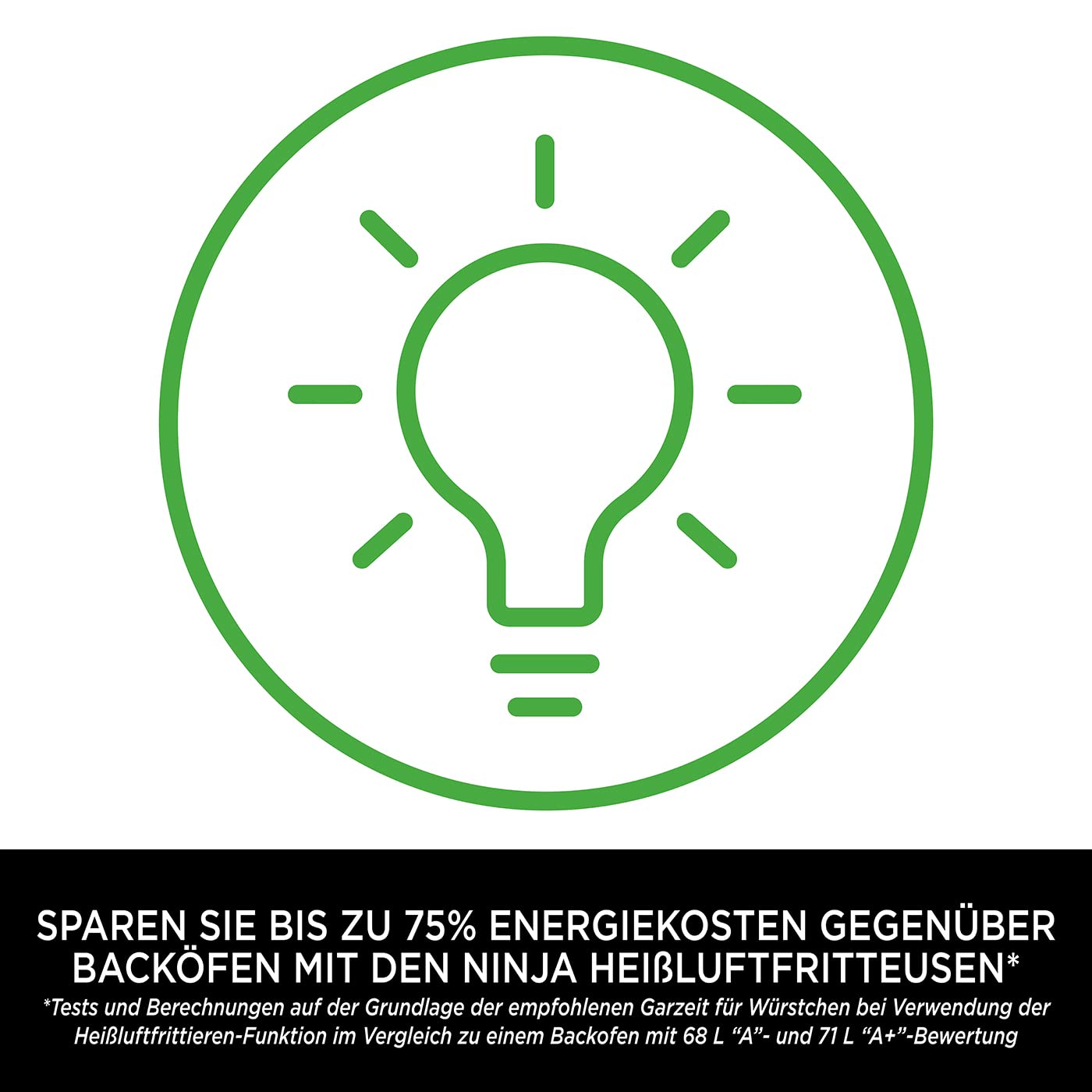 Einzelheiten: Der Luftfritteuse, die 2 Lebensmittel auf 2 Arten kocht und gleichzeitig fertigstellt. Mehr als eine Luftfritteuse mit 6 Zubereitungsmöglichkeiten - Max Crisp, Braten, Backen, Aufwärmen, Entwässern und Air Fry. Wenn es ums Kochen geht, ist Timing alles. Diese Dual-Zone-Luftfritteuse übernimmt das Denken und Timing für Sie. Mit 2 unabhängigen Kochzonen können Sie Kochprogramme, Zeiten und Temperaturen in beiden Schubladen kombinieren, um köstliche Mahlzeiten in wenigen Augenblicken zuzubereiten! SYNCHRONISIEREN Sie das Kochen verschiedener Lebensmittel in jeder Schublade - beide sind genau zur gleichen Zeit servierfertig! Sie möchten die ganze Familie versorgen? VERGLEICHEN Sie die doppelte Menge an Lebensmitteln in der gleichen Zeit! Bis zu 75% schneller als Ventilatorenöfen*, von gefroren auf knusprig in Minuten. Mit bis zu 75% weniger Fett**, genießen Sie fettfreies frittiertes Essen mit wenig bis gar keinem zusätzlichen Öl. Ninja - Machen Sie Ihre Küche zu einer Ninja-Küche. *Getestet mit Fischstäbchen und Würstchen, einschließlich Vorheizen. **Getestet im Vergleich zu frittierten, handgeschnittenen Pommes frites.