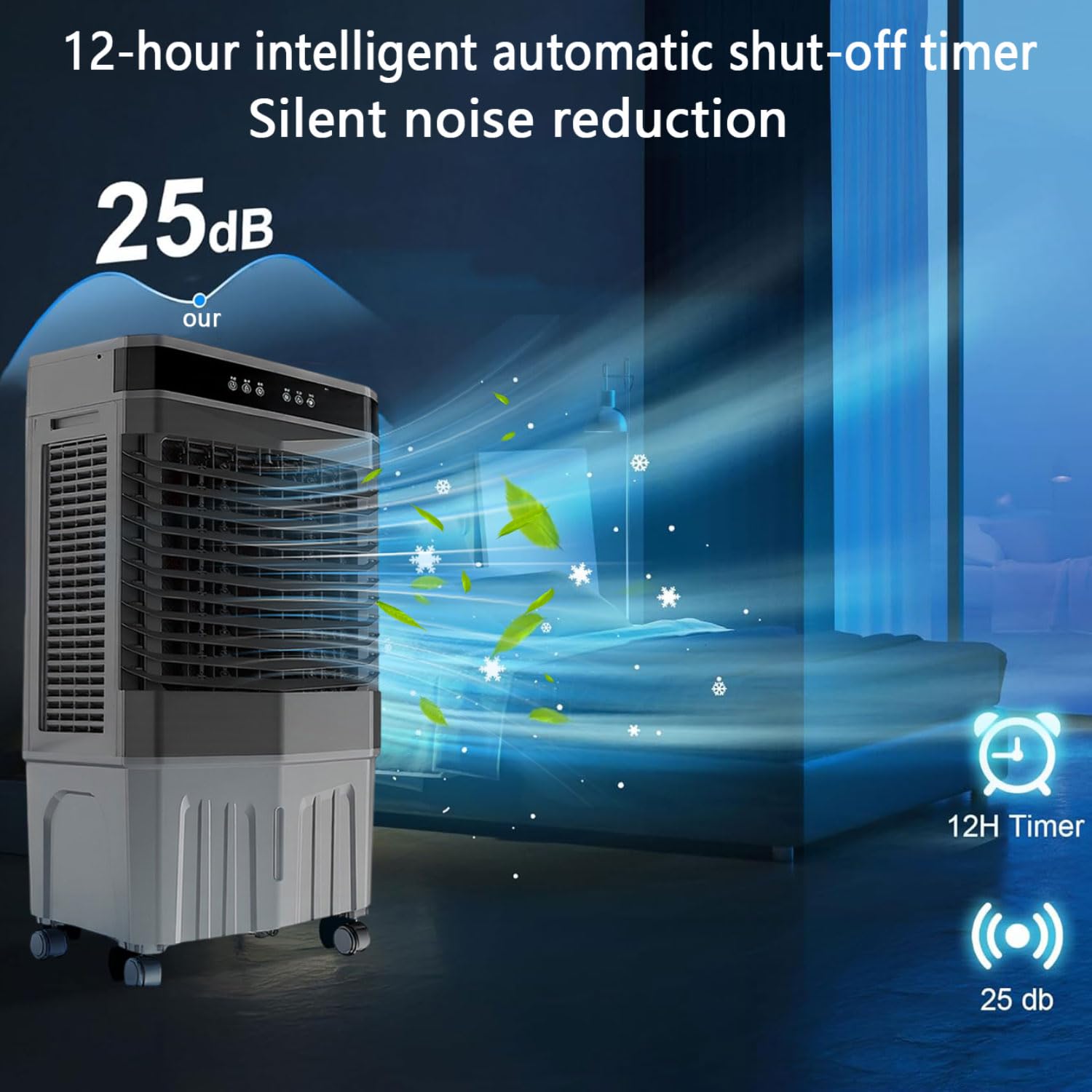 - Leises Timing: Unser tragbarer Luftkühler arbeitet leise, mit einem Geräuschpegel zwischen einem Flüstern und einem normalen Gespräch. Der intelligente 12-Stunden-Abschalttimer ermöglicht Ihnen eine ganze Nacht ungestörten Schlaf.