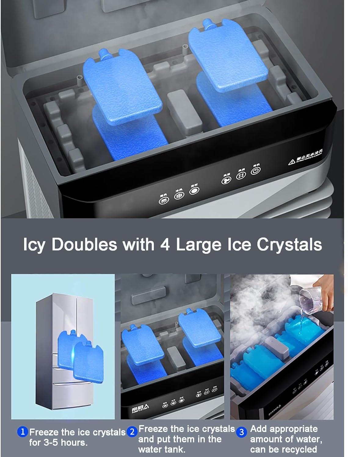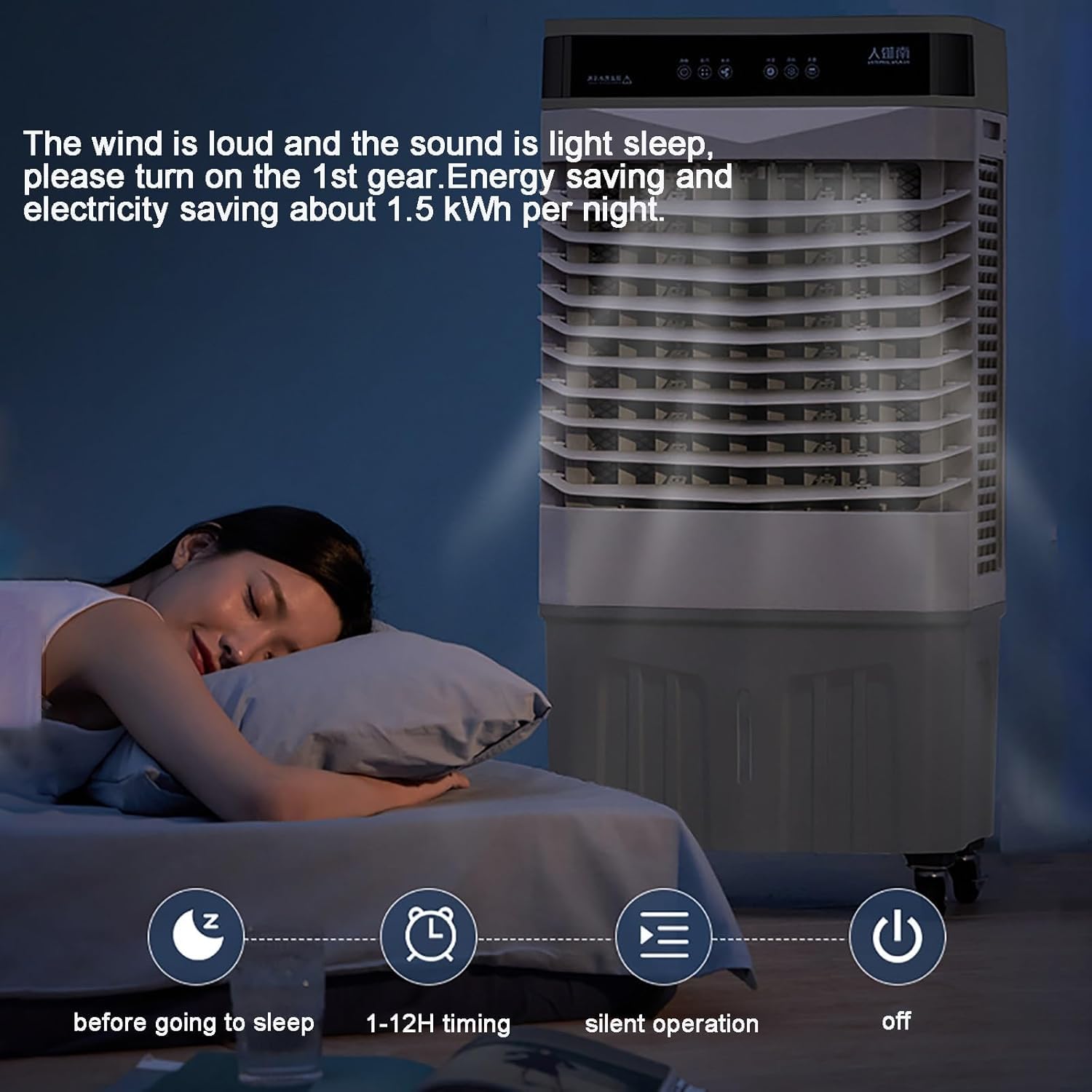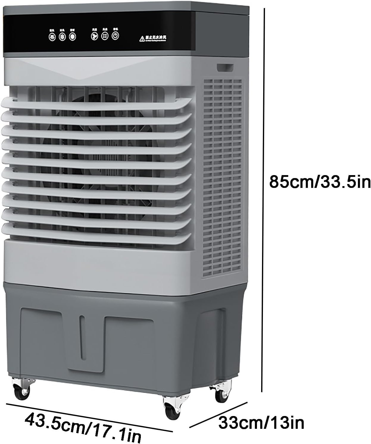- 【SOMMERSICHERHEIT】 Einstellung der Windgeschwindigkeit in drei Stufen. Das Prinzip der Verdunstungskühlung in Kombination mit dem oberen Eisraum führt weiterhin Wärme ab. Die vertikale Luftzufuhr von 120 ° horizontal d ermöglicht es Ihnen, eine breitere Abkühlung im Freien zu genießen oder den Innenraum schnell abzukühlen.