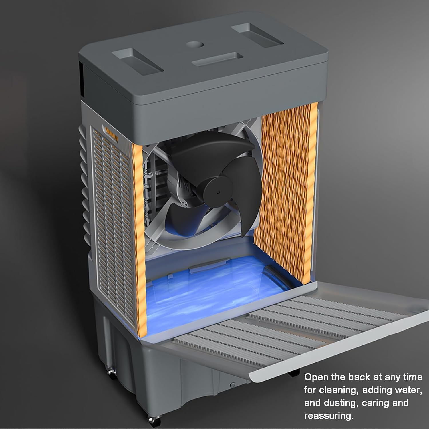 - 【BEWEGLICH ZU VERWENDEN】 Der Verdunstungsluftkühler ist mit 360°-Rollrollen ausgestattet, die es einfach machen, ihn an verschiedene Orte wie das Wohnzimmer, die Garage oder den Hinterhof zu bewegen. Bewegliche Sumpfkühler ermöglichen es auch älteren Menschen, die ohne Klimaanlagen leben, sich nur schwer fortzubewegen und sie einfach zu platzieren, wo sie möchten. Sichtbarer Wasserstand.