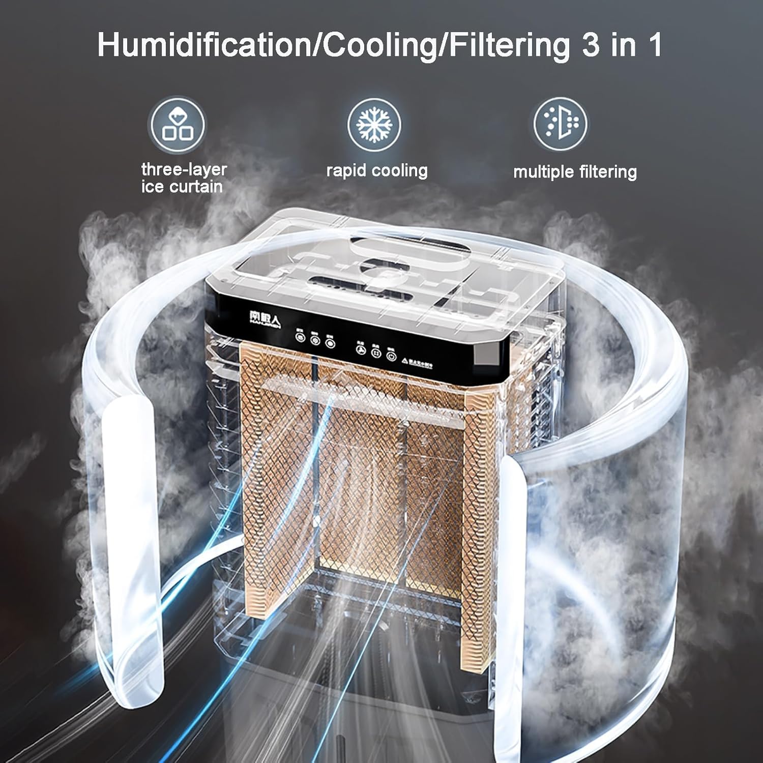 - 【GELD SPAREN】 3-in-1-Verdunstungsluftkühler mit Funktionen wie f, Luftkühler, d-Luftbefeuchter. Die Befeuchtungsfunktion spendet Feuchtigkeit, um Symptome trockener Luft wie juckende Augen oder trockene Haut in klimatisierten Räumen zu lindern. Weniger Stromverbrauch für weniger Stress auf Ihrer Stromrechnung. Pro Stunde werden etwa 0,1 Kilowattstunden Strom verbraucht.